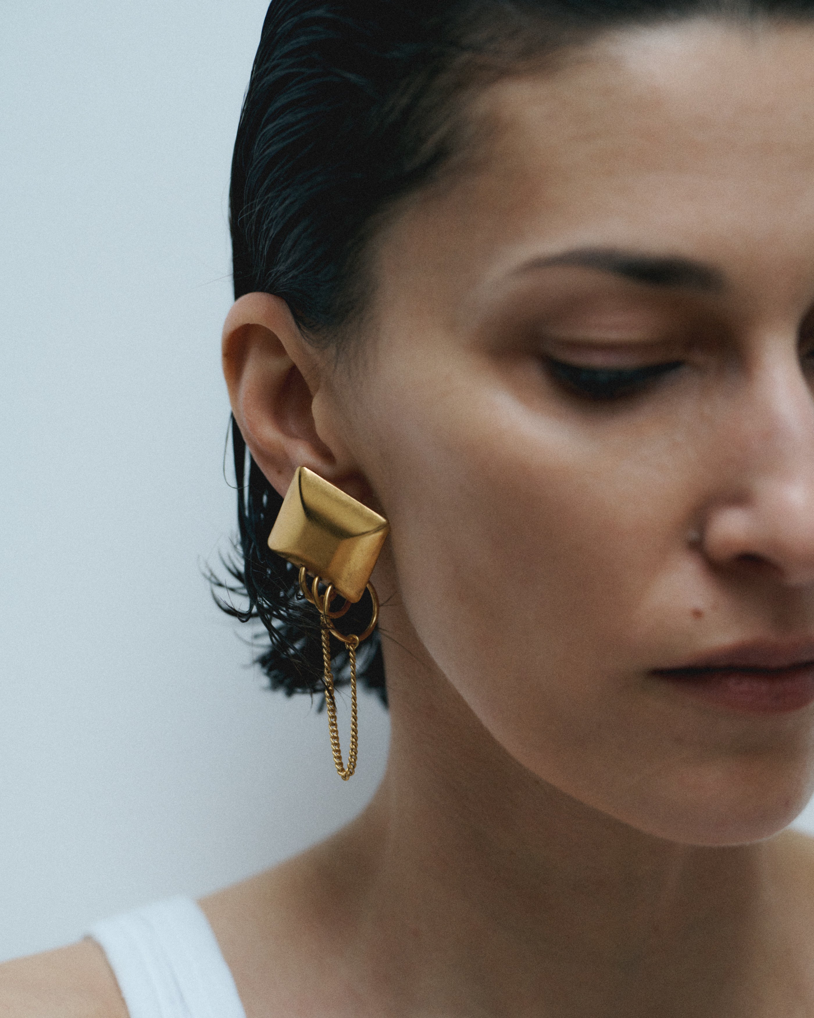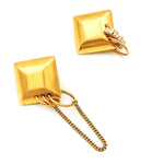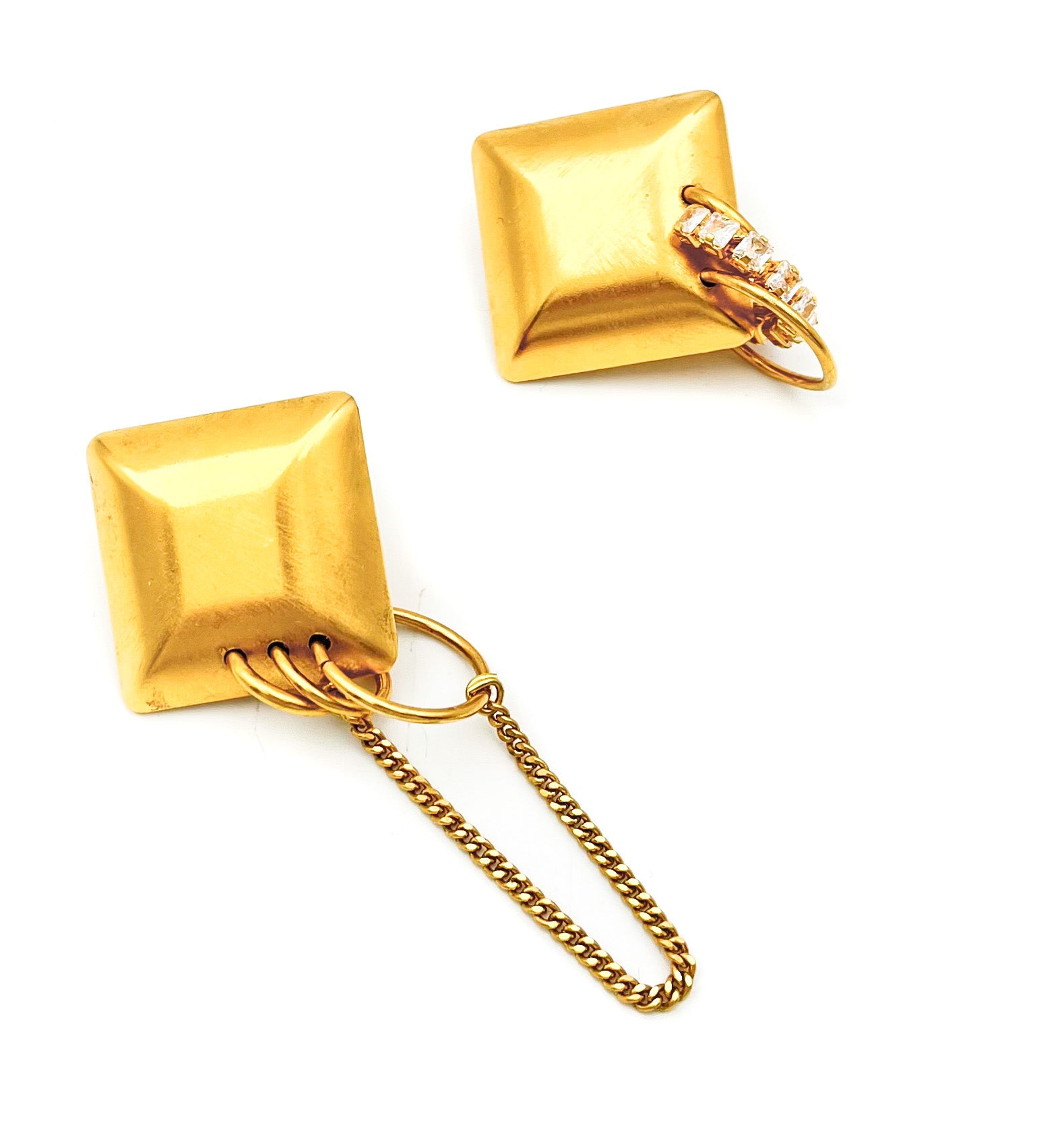 Boucles d'oreilles carré, chaîne et zircon.