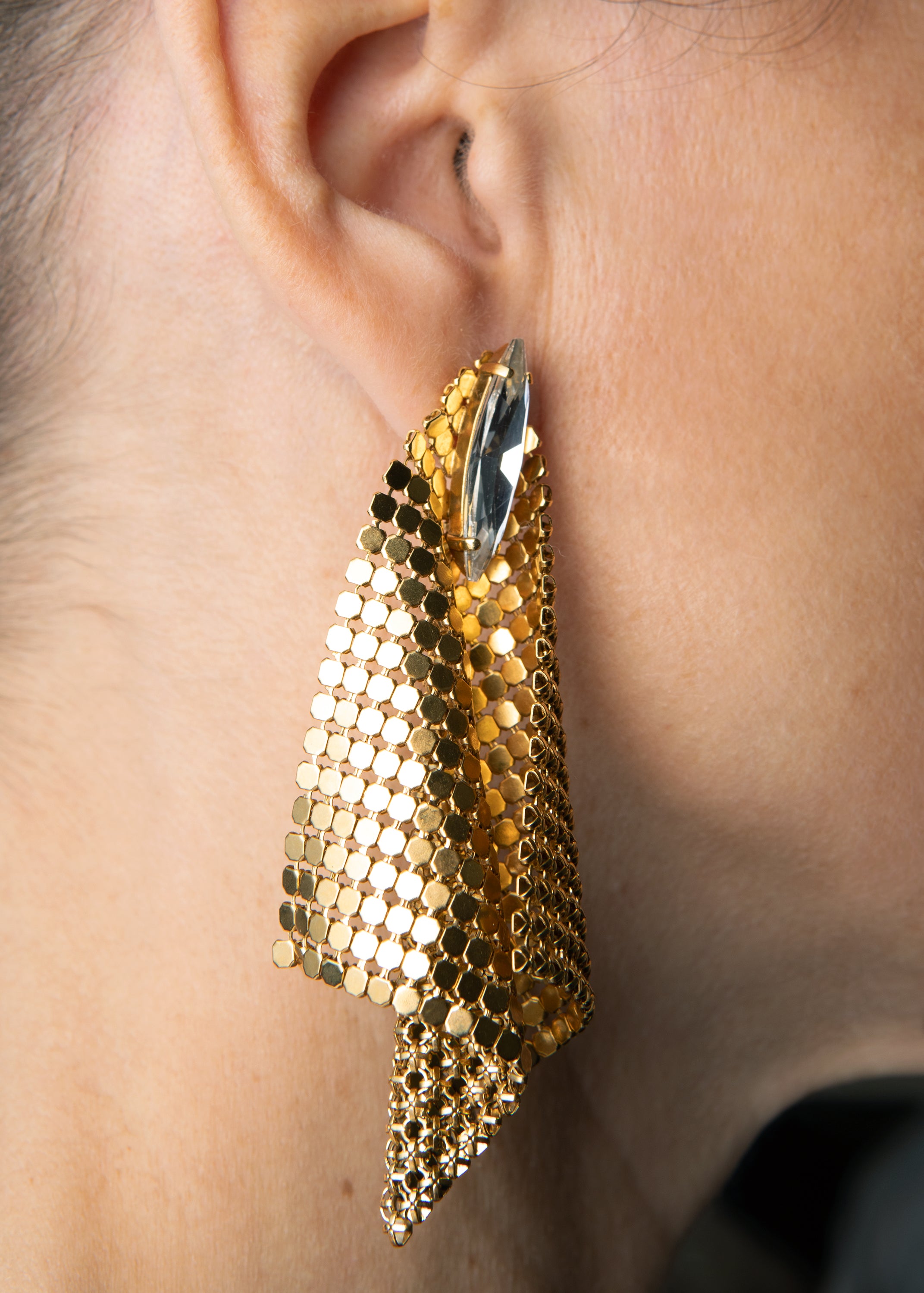 Boucles d'oreilles drapées en cotte de maille, cristal navette.