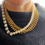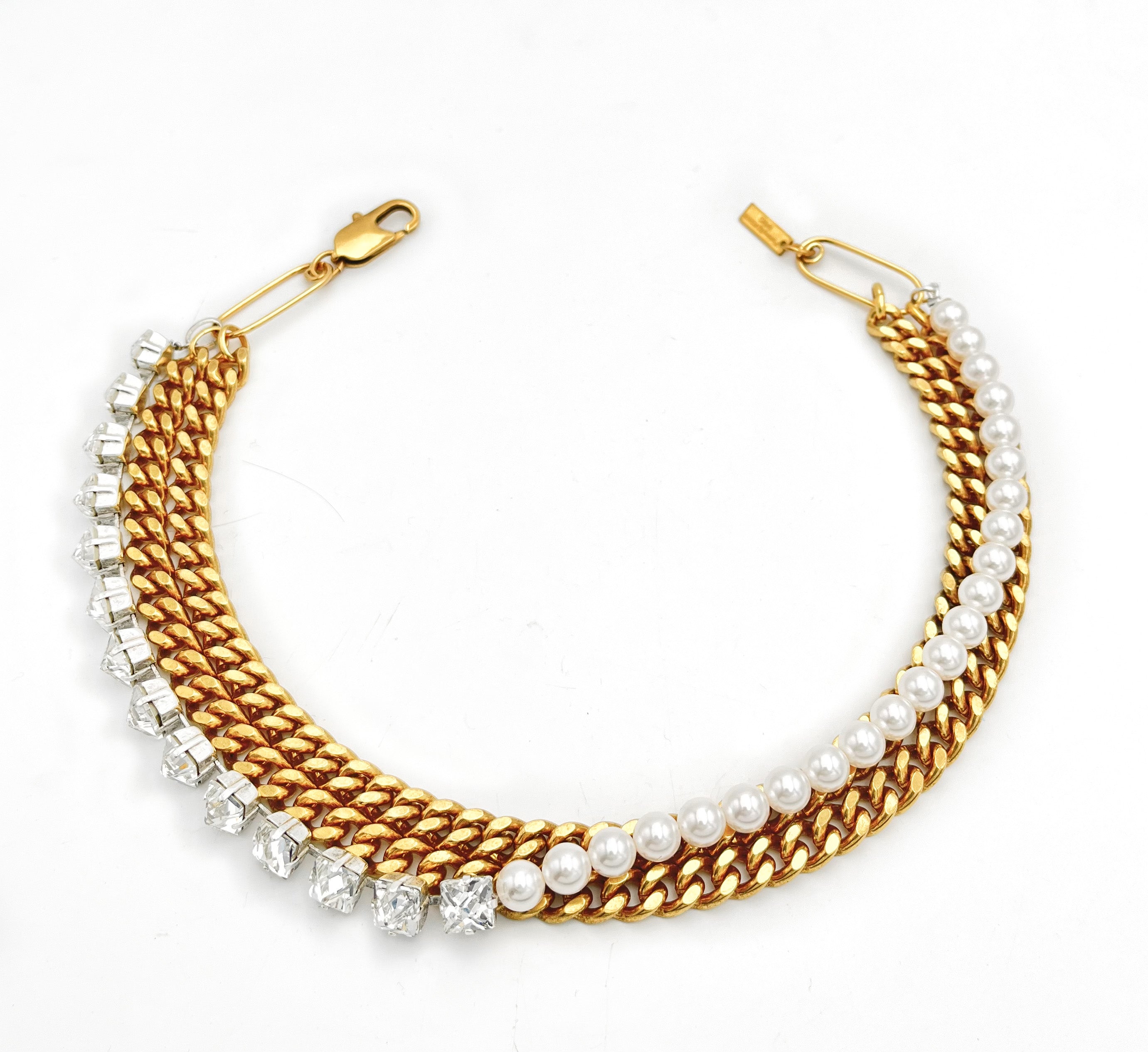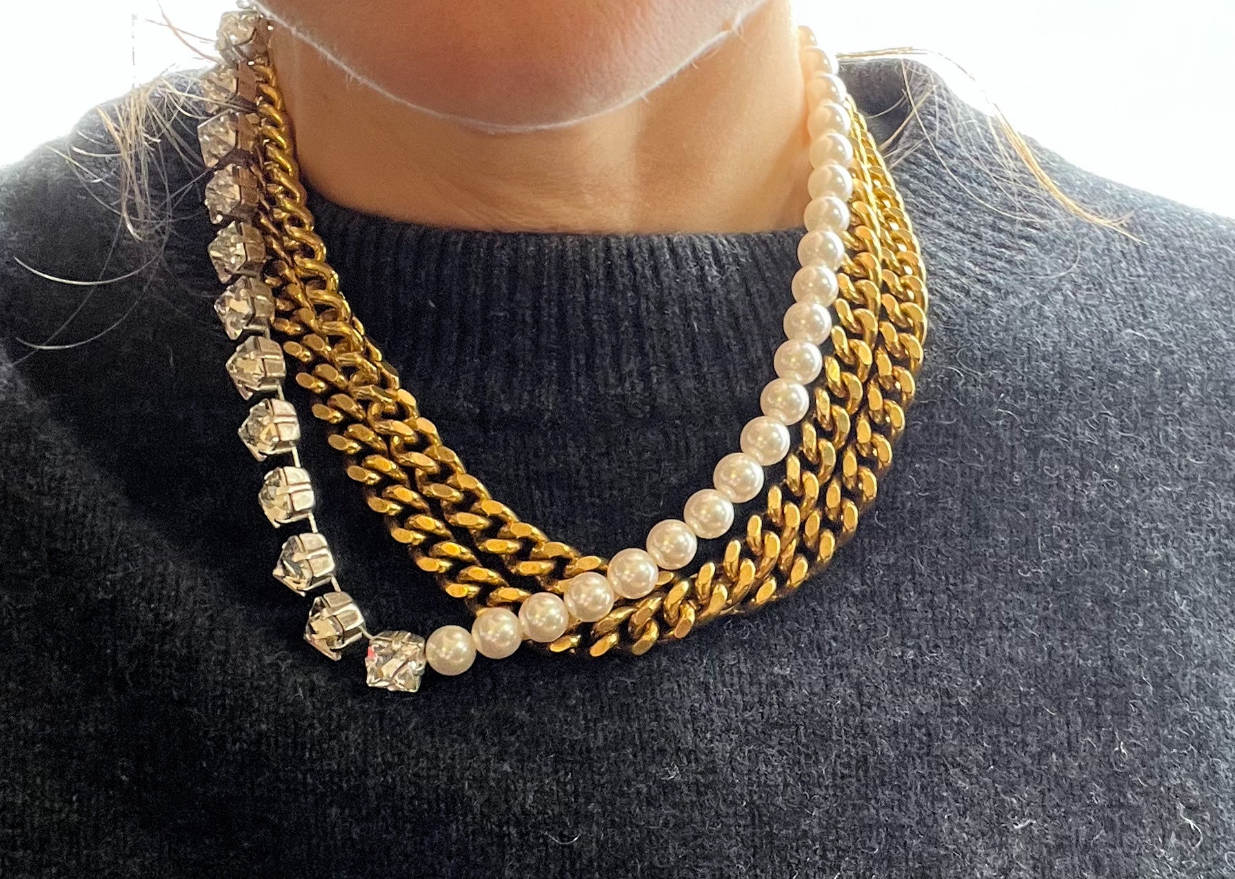 Collier multi-rang, cristaux "stud", perles de verres 8mm.